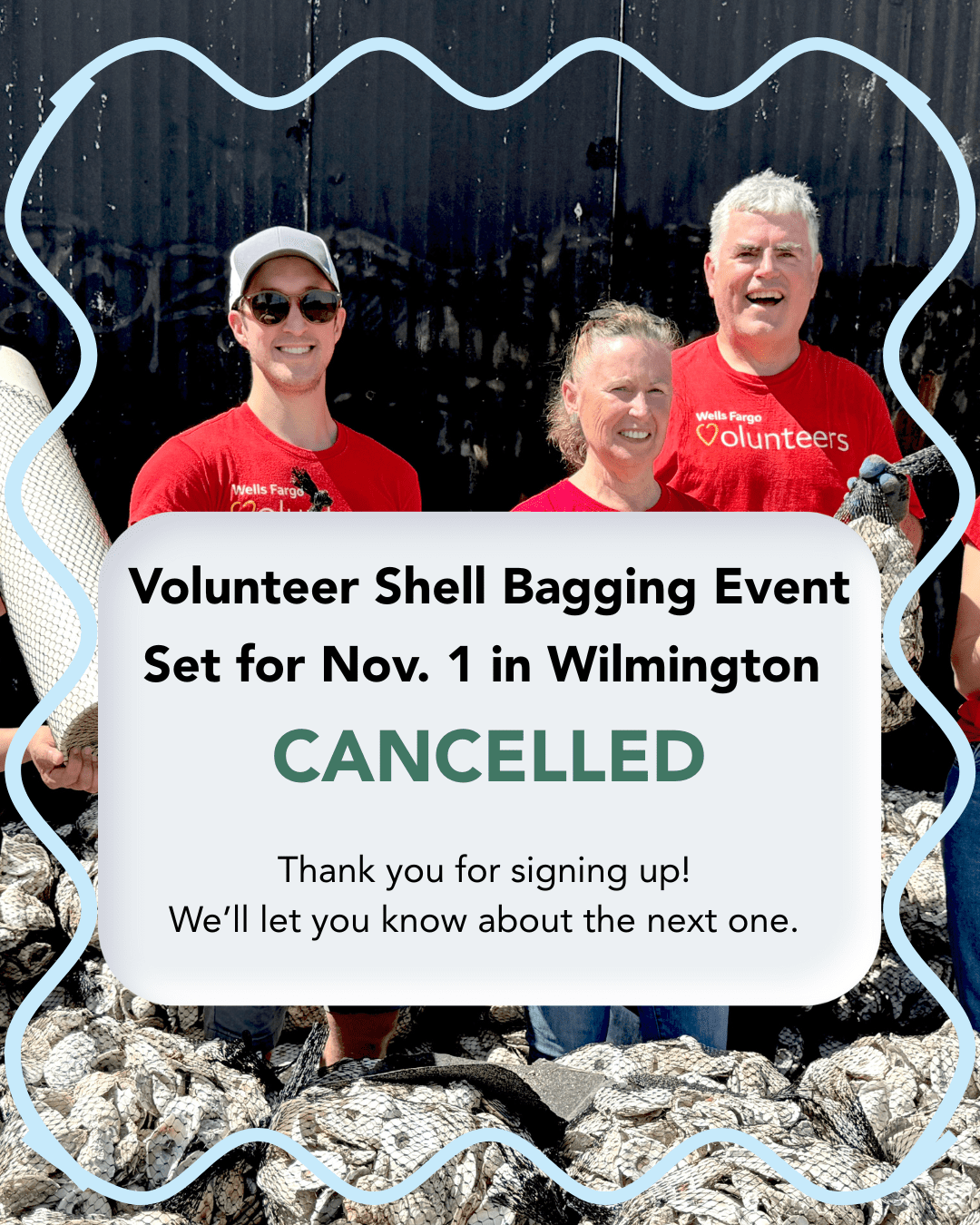 Hey there! Looks like we’ve bagged our oyster shells for the season. Our Nov. 1 public shell bagging event in Wilmington is CANCELLED. If you already signed up, you should have received a notification via email.